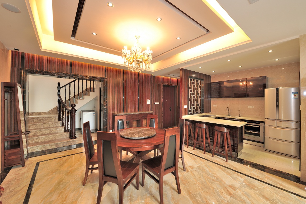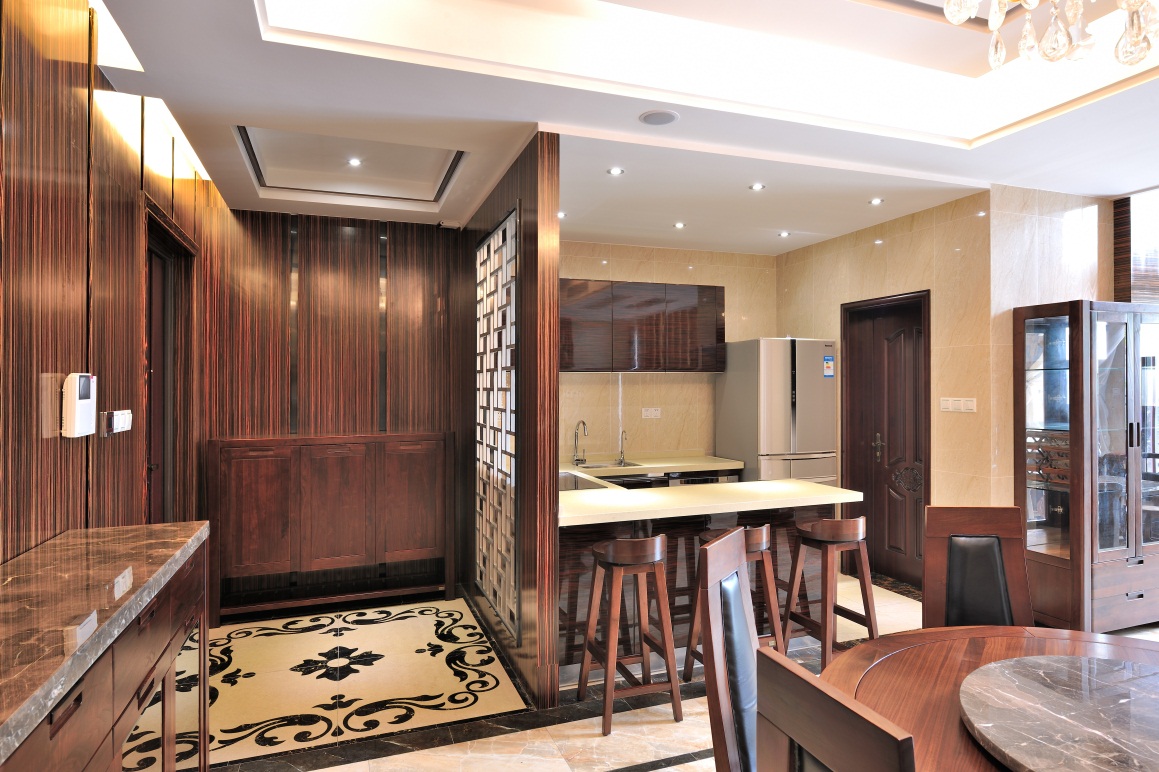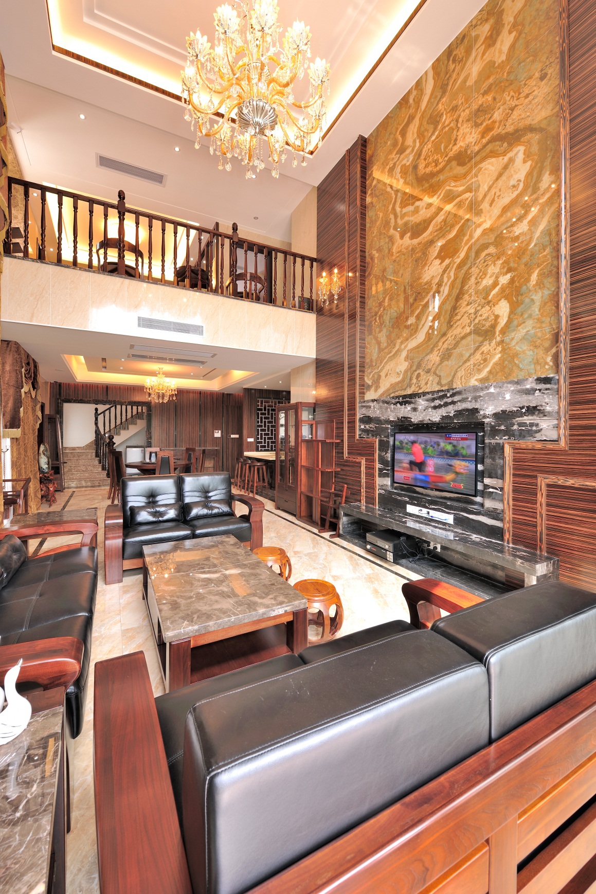 黑鏡鋼、黑金花大理石、烤漆飾面、墻紙、全拋釉地磚、布藝硬包